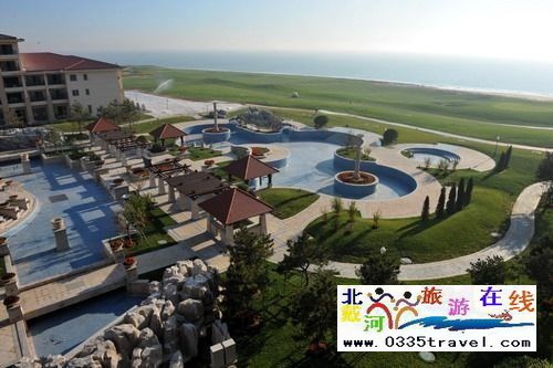 球場的配套建筑——秦皇島黃金假日國際酒店(五星),總建筑面積約十萬平方米,酒店由三組多層大開間歐式建筑組成,該酒店的建成不僅能滿足高水平的國際高爾夫賽事的要求,還為各界人士提供了一個(gè)集會議、社交、餐飲、健身為一體的高檔娛樂休閑場所。